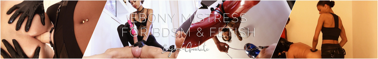 Als Ebonatrix liebe ich die sinnlichen, weichen und sanften Augenblicke ebenso wie eine harte und strenge Sklavenerziehung. Mich beflügeln die aufregendsten und schmutzigsten Momente, egal wie ungewöhnlich oder fernab der Norm sie sind. Was ich tue, tue ich aus Überzeugung und Leidenschaft, und habe ein Gespür für die verschiedensten und perversesten Fantasien, Fetische und Neigungen.