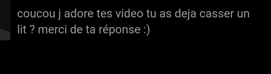 > Et vous vous avez déjà cassé un lit ?
