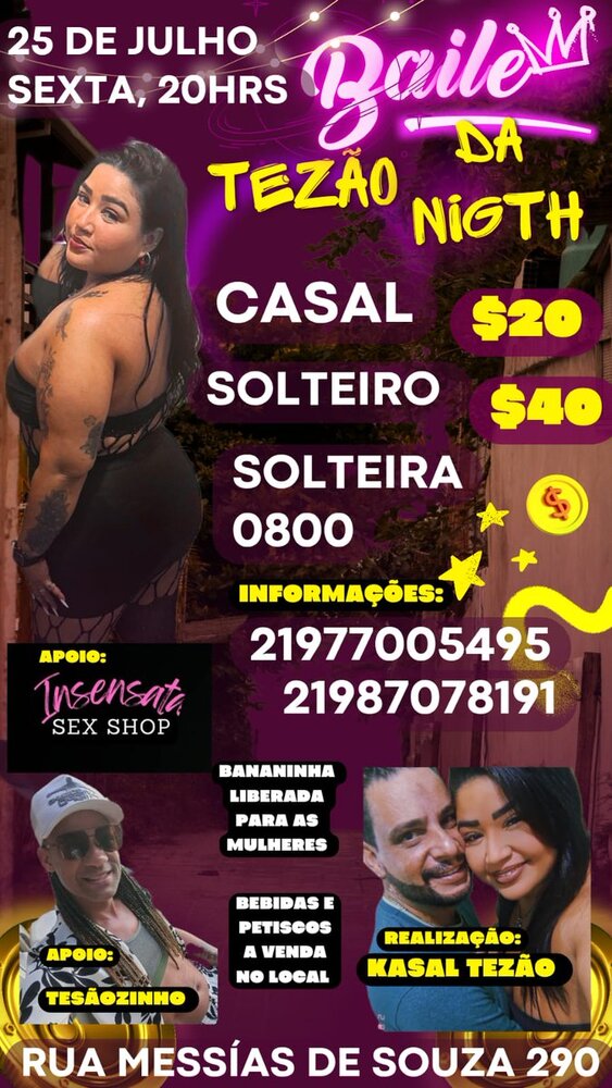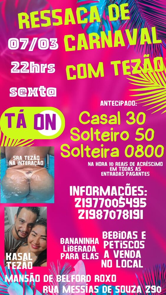 Sexta-feira dia 22/08 e logo ali e putarua na mansão as 21 horas rua Messias de Souza 290