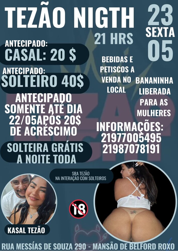 Festa tezao nigth Toda Sexta feira as 22horas na mansão de belford roxo Rua Messias de Souza 290