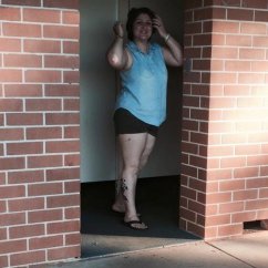 she normaly got red hair but she is blonde atm and her body type is totally perfect ..super big boobs and a big ass and i'm sure her vagina is still tight ..considering my dads penis is small ...