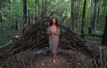 Nude on porch