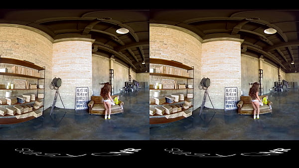 Tattooed busty russian brunette babe teasing in UHD VR video 61 sec