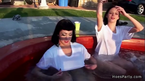 Amateur babes partying in hot tub