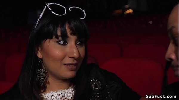 Brunette gets orgy fucked at theater