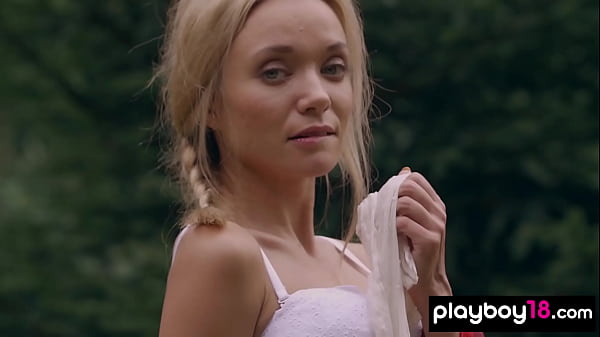Hot naked Russian blondie Zhenya Belaya hanging out her clothes and posing