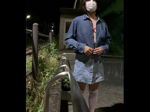 女装まゆ緊縛コスで露出して手すりにまたがり